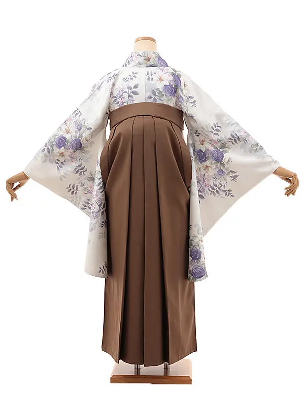 卒業式袴レンタルV348 白地 ブーケ×ブラウン
