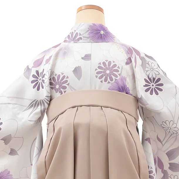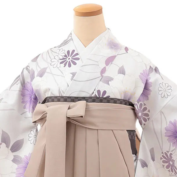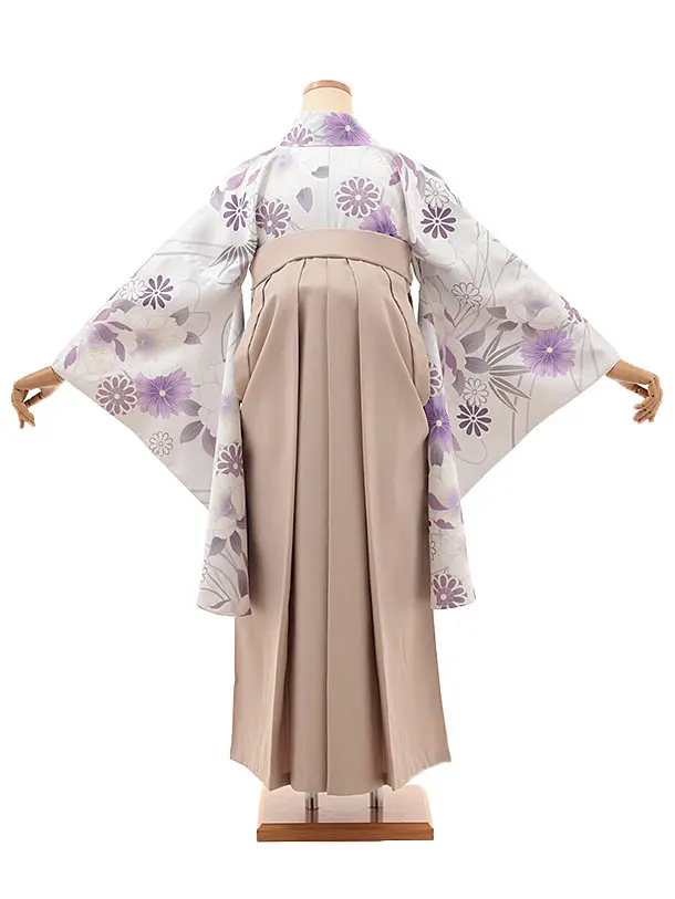 卒業式袴レンタルV362 薄グレー 花×ベージュ