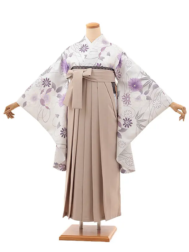 卒業式袴レンタルV363 薄グレー 花×ベージュ
