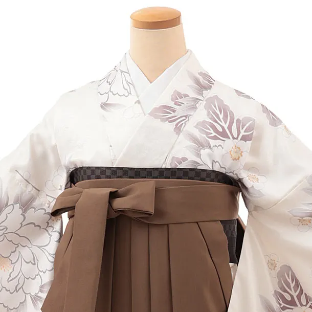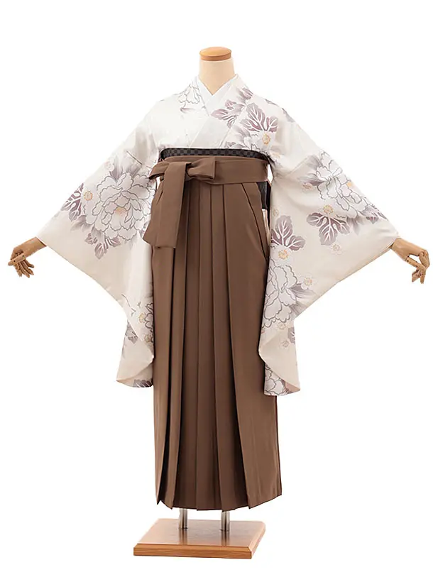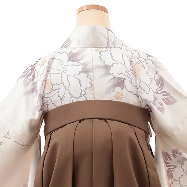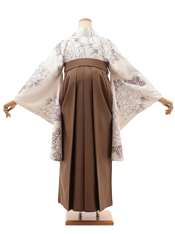卒業式袴レンタルV364 クリーム地 牡丹×ブラウン
