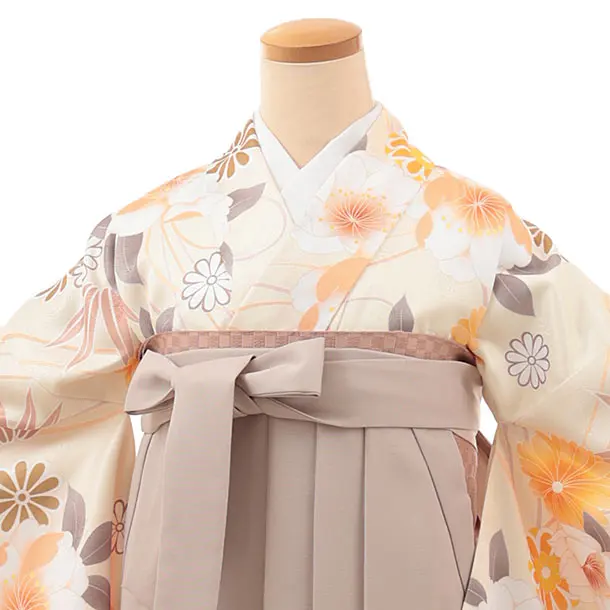 卒業式袴レンタルV366 うす黄色 花×ベージュ