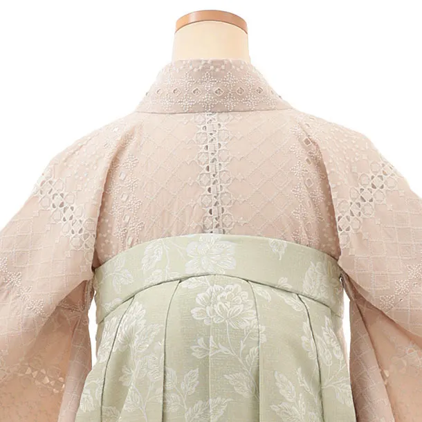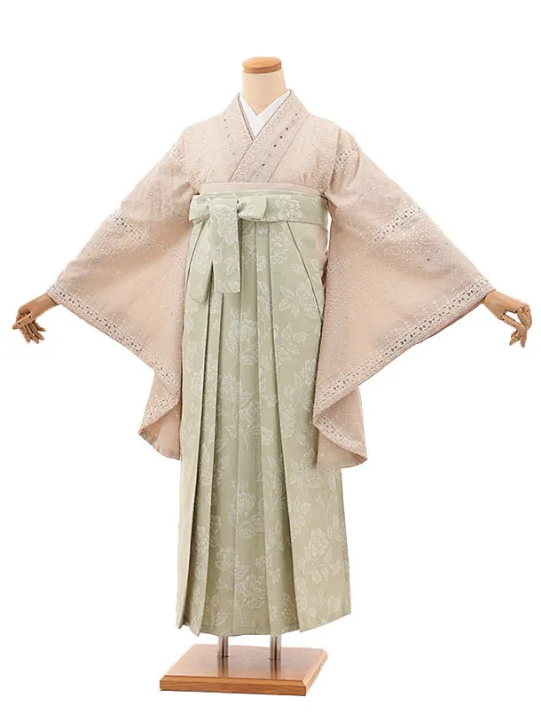 卒業式袴レンタルV374 くすみピンク レース×ペールグリーン