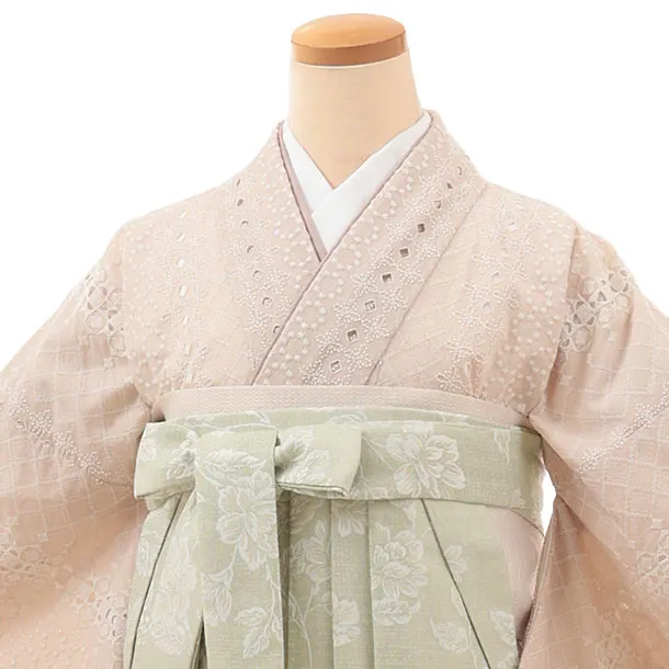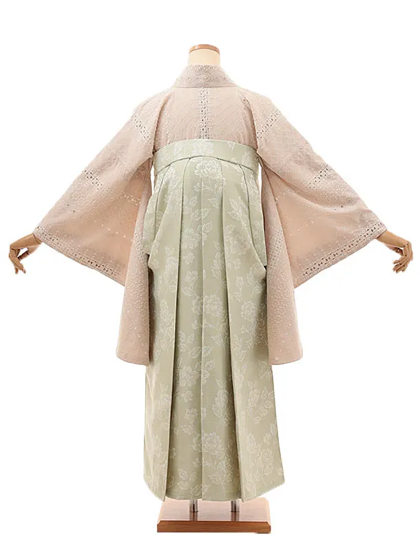卒業式袴レンタルV375 くすみピンク レース×ペールグリーン