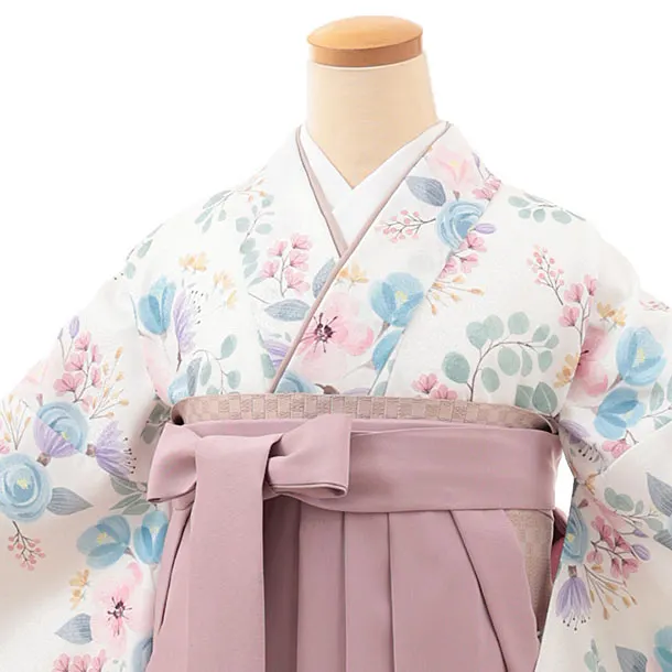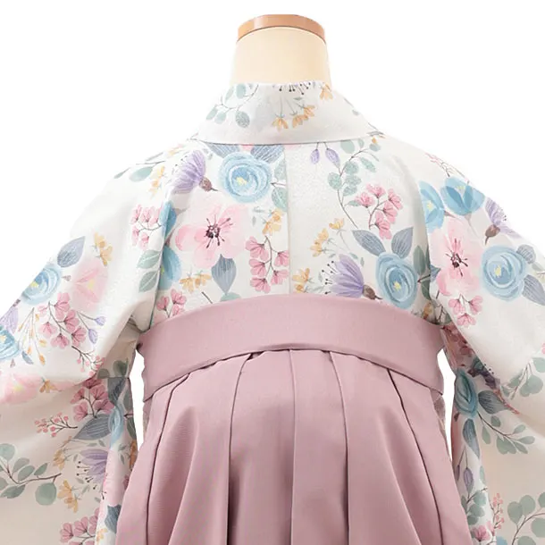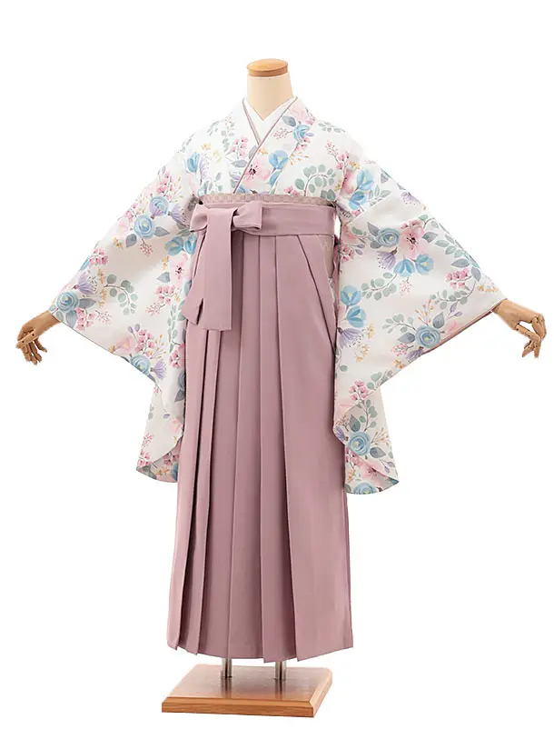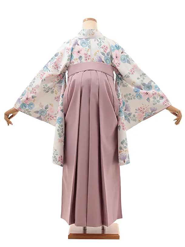 卒業式袴レンタルV376 白パステルブーケ×ピンクパープル