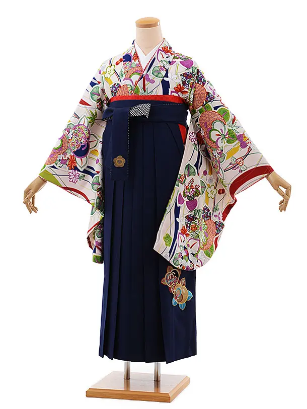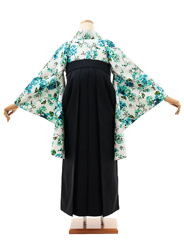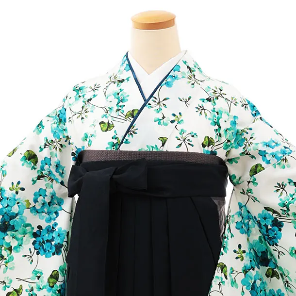 卒業式袴レンタルV377 白地ブルー小花×紺