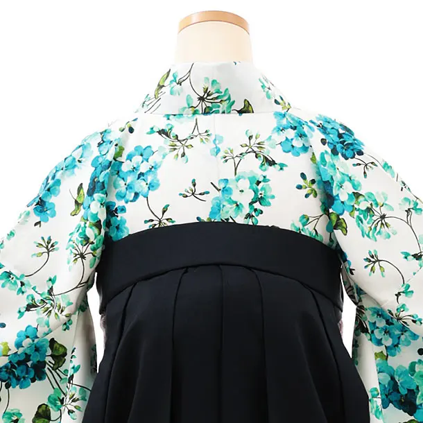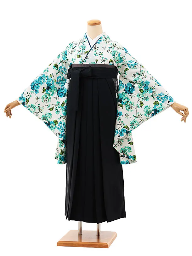 卒業式袴レンタルV378 白地ブルー小花×紺
