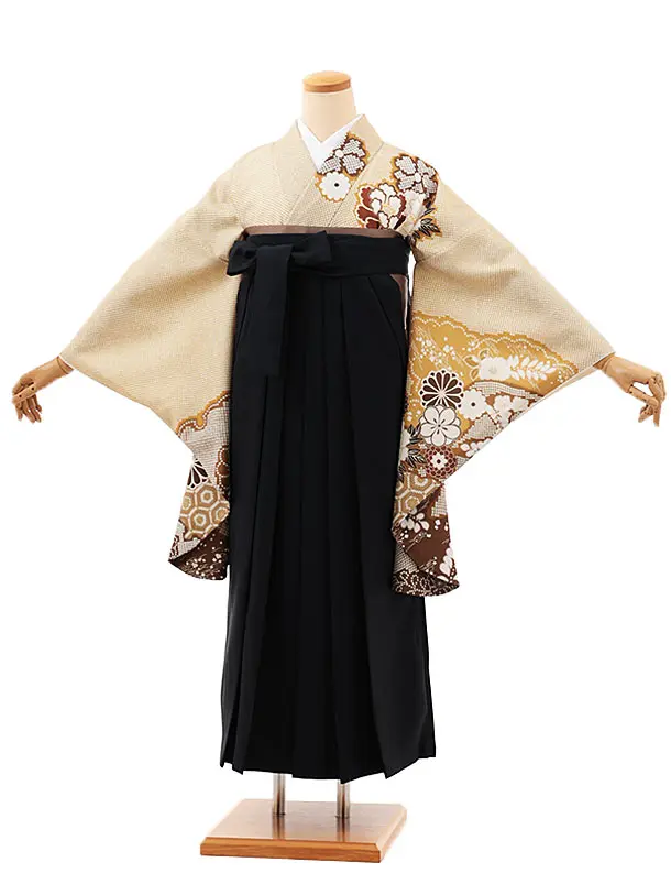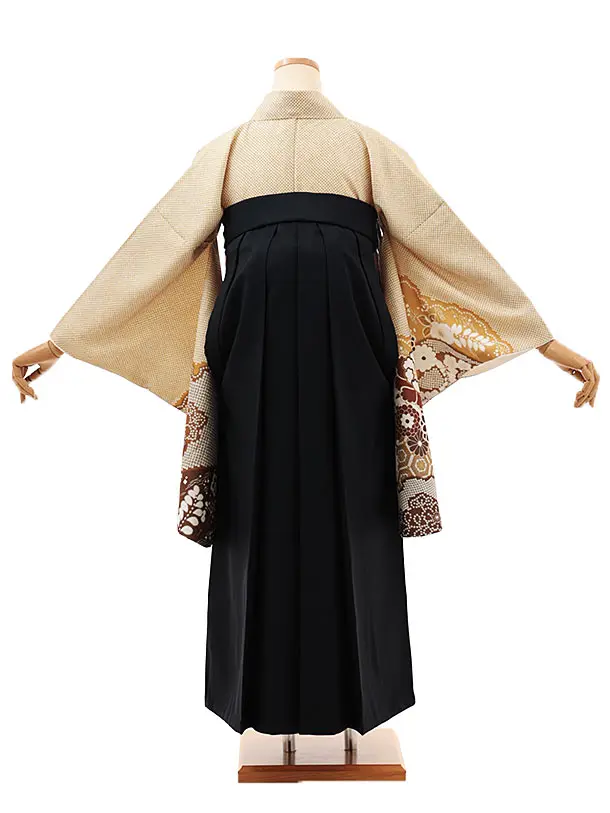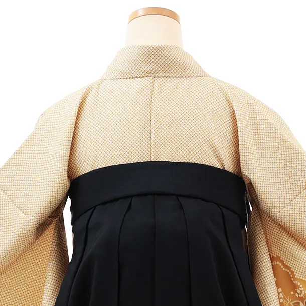 卒業式袴レンタルV387 からし疋田柄ぼたん菊×紺