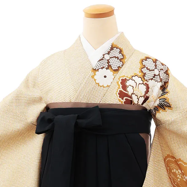 卒業式袴レンタルV388 からし疋田柄ぼたん菊×紺
