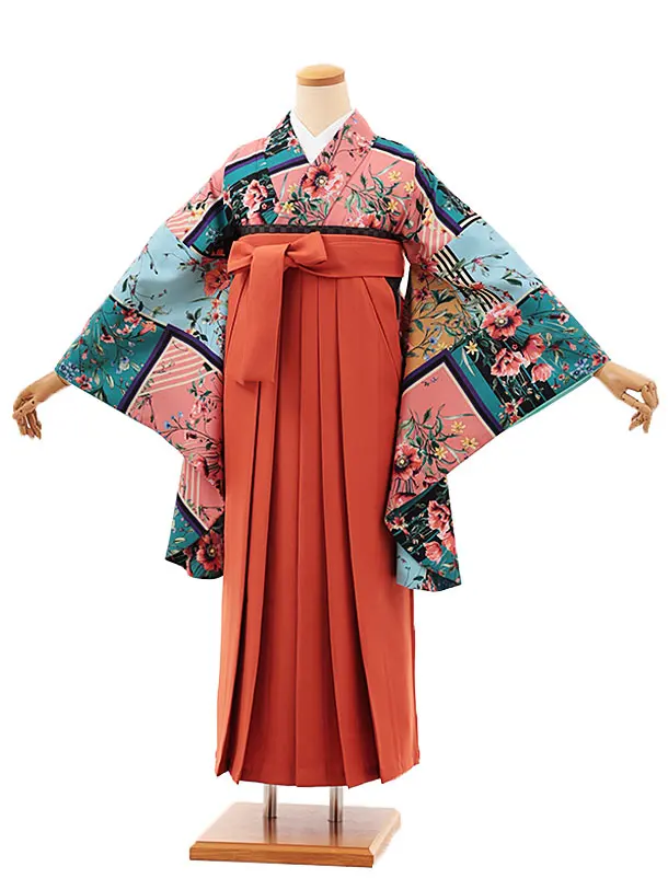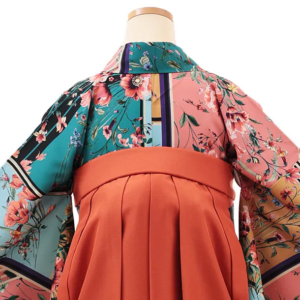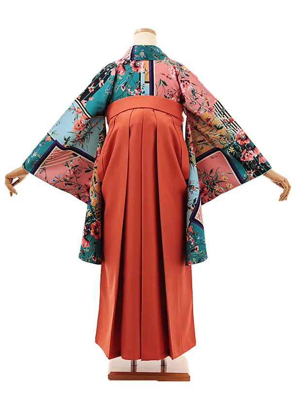 卒業式袴レンタルV395 多色ブルーアネモネ×テラコッタ