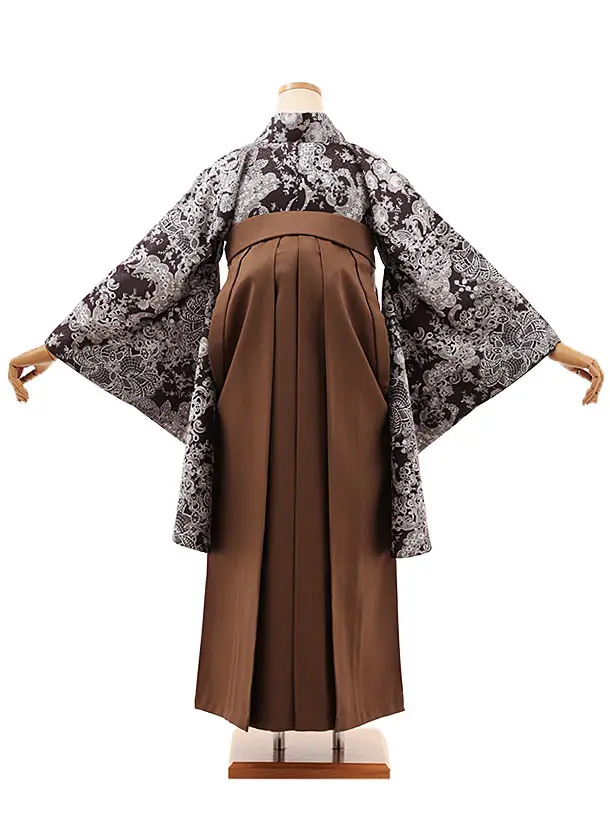 卒業式袴レンタルV397 ブラウンレース柄×ブラウン