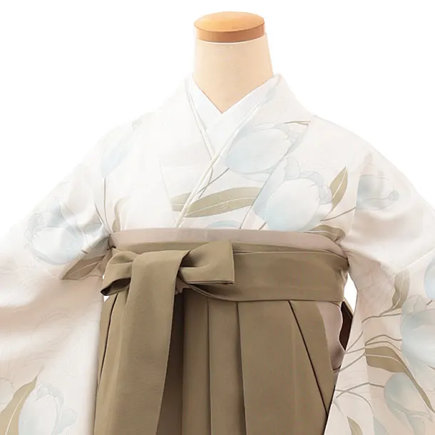卒業式袴V428 ラフィネモカ オフホワイトフェミニンガーデン×カーキグリーン