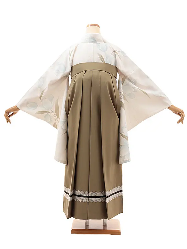 卒業式袴V429 ラフィネモカ オフホワイトフェミニンガーデン×カーキグリーン