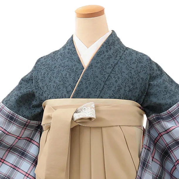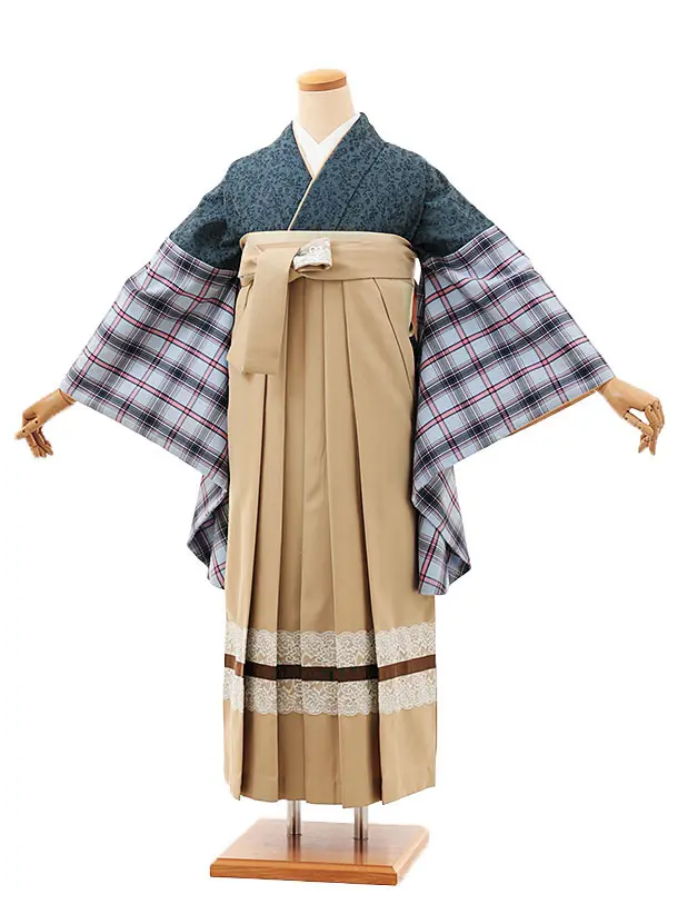 卒業式袴レンタルV432 ラフィネモカ ブルーチェック×ミルクティーブラウン