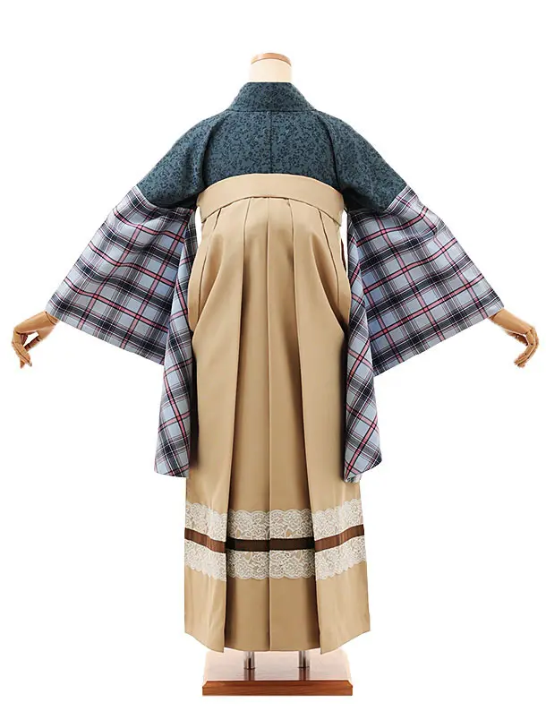 卒業式袴レンタルV433 ラフィネモカ ブルーチェック×ミルクティーブラウン