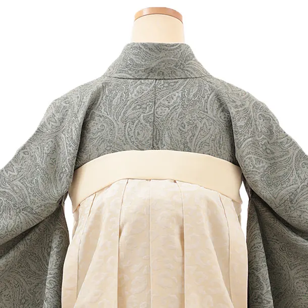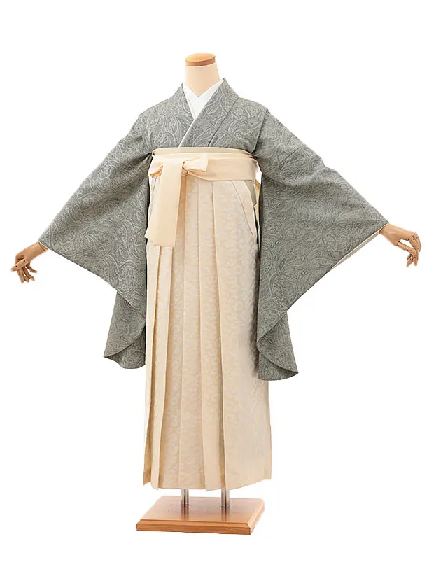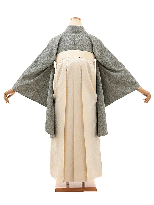 卒業式袴V446 ラフィネモカ グリーンベージュペイズリー×クリームレオパード