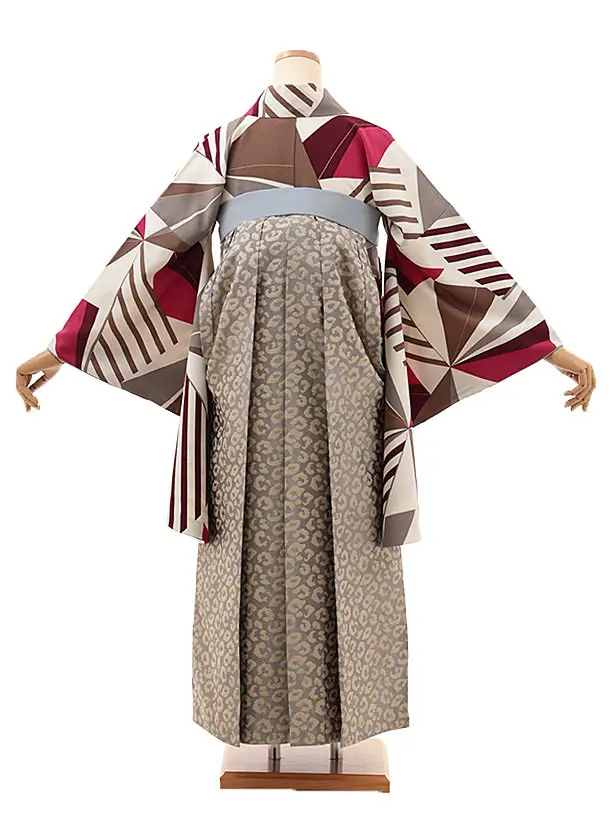 卒業式袴レンタルV451 ラフィネモカ ジオグラフィックローズ×グレーレオパード