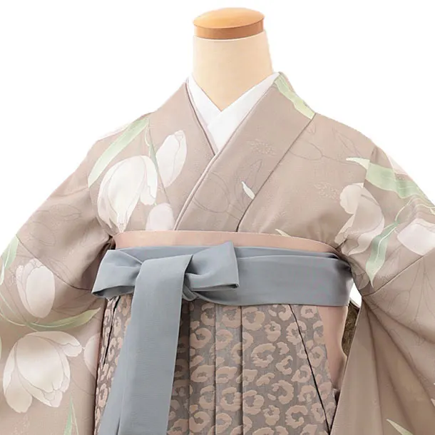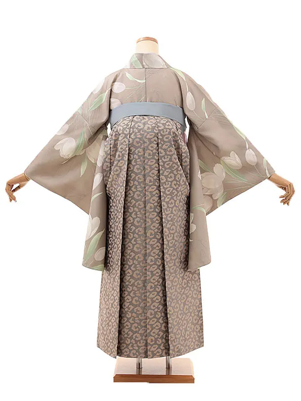 卒業式袴V453 ラフィネモカ スモーキーベージュガーデン×グレーレオパード