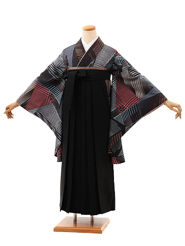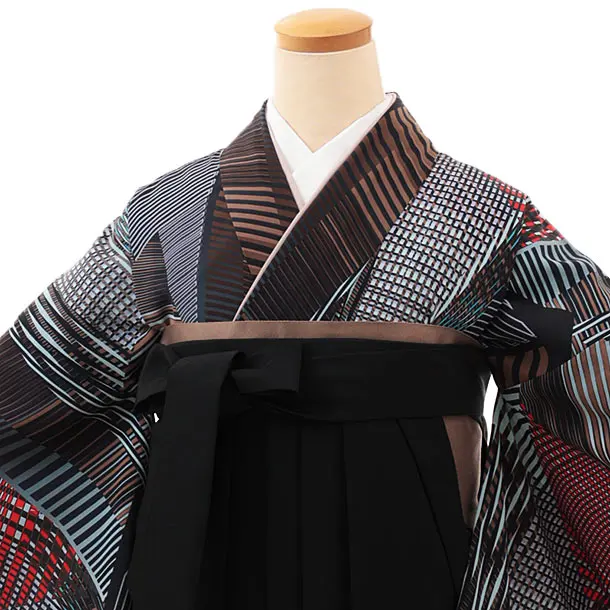 卒業式袴レンタルV463 ラフィネモカ ブルーブラックアラベスク×黒