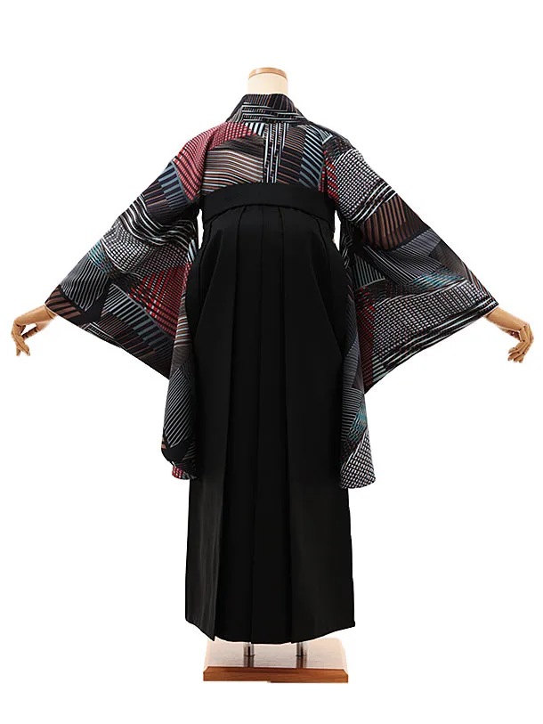 卒業式袴レンタルV464 ラフィネモカ ブルーブラックアラベスク×黒