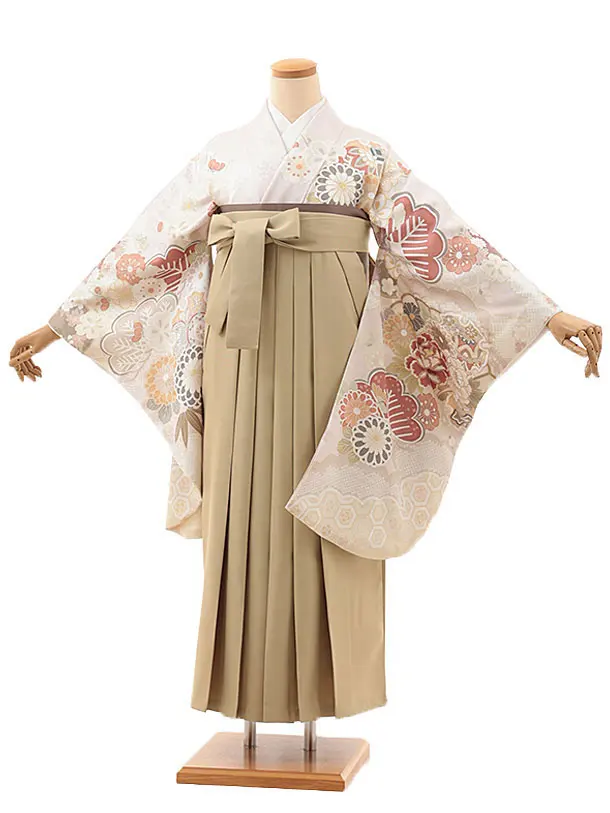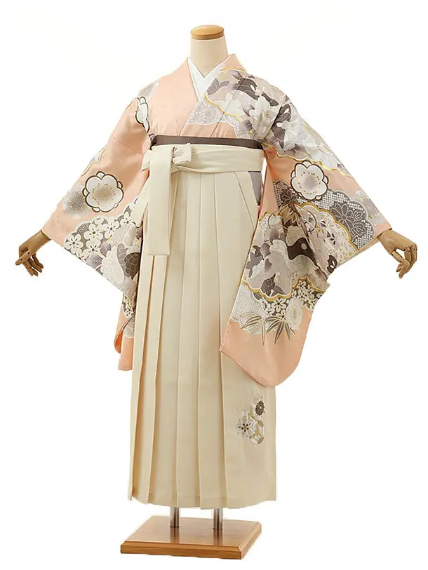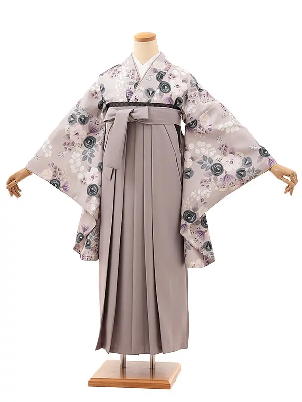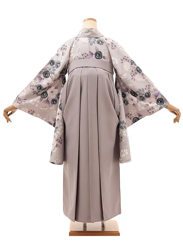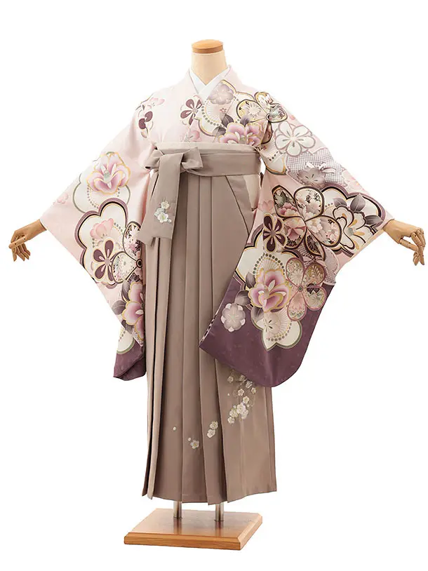 卒業式袴レンタルV473 ニュアンスピンクパステルブーケ×グレージュ