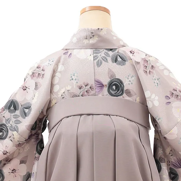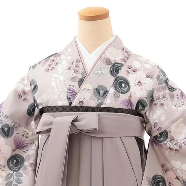 卒業式袴レンタルV474 ニュアンスピンクパステルブーケ×グレージュ