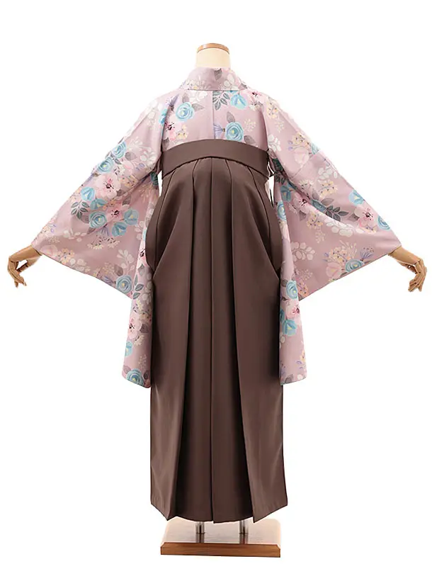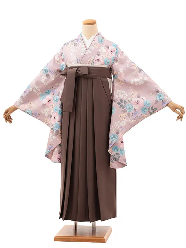 卒業式袴レンタルV479 ピンクパステルブーケ×ブラウン