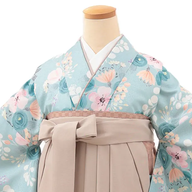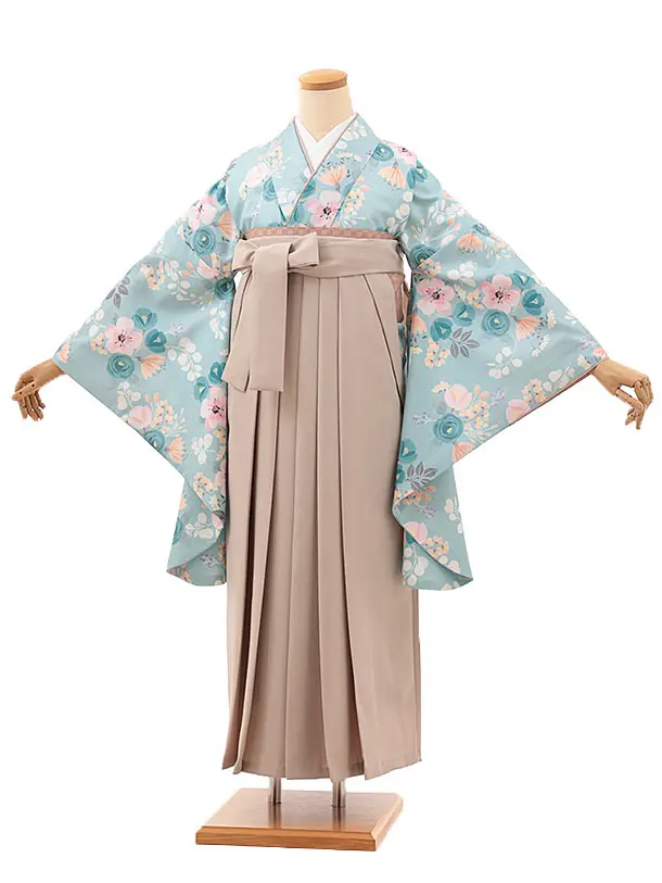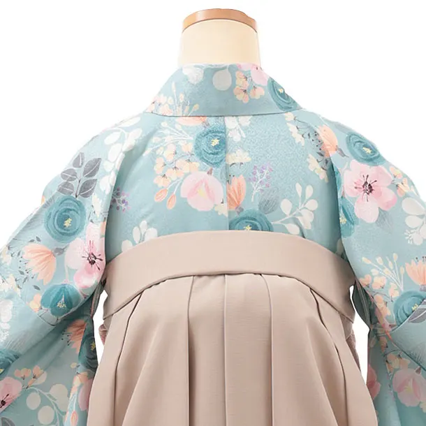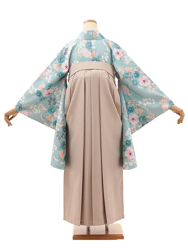 卒業式袴レンタルV484 グリーンパステルブーケ×ベージュ
