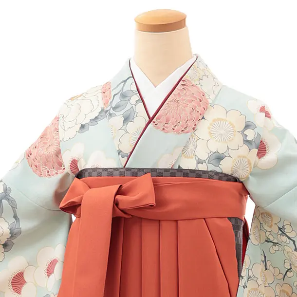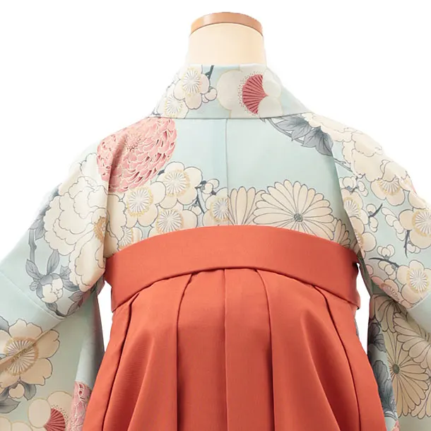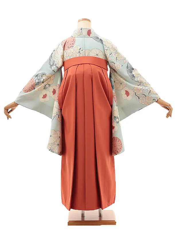 卒業式袴レンタルV486 水色古典花×テラコッタ