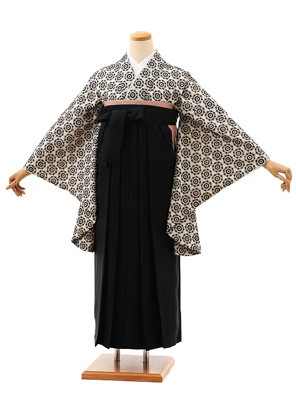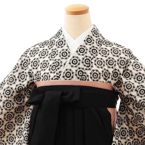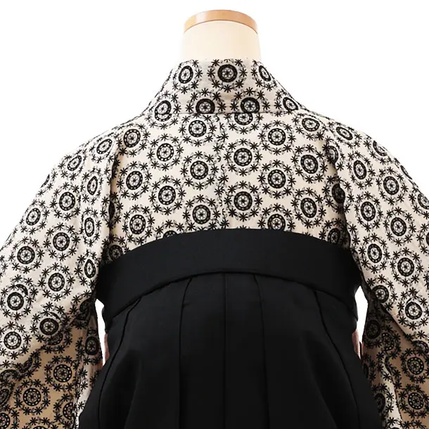 卒業式袴レンタルV502 ベージュ黒レース×黒