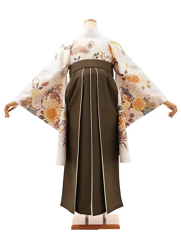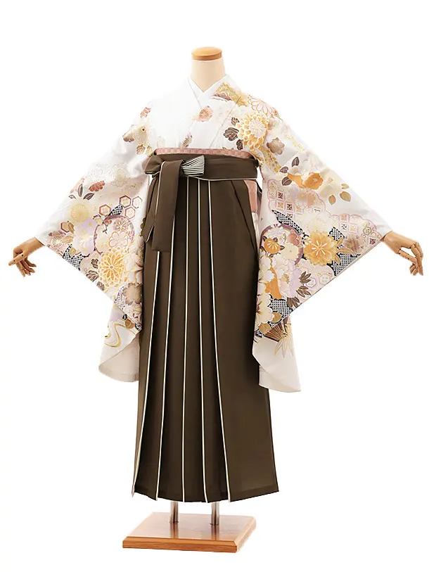卒業式袴レンタルV509 白地雲取り花づくし×ブラウンアイボリー