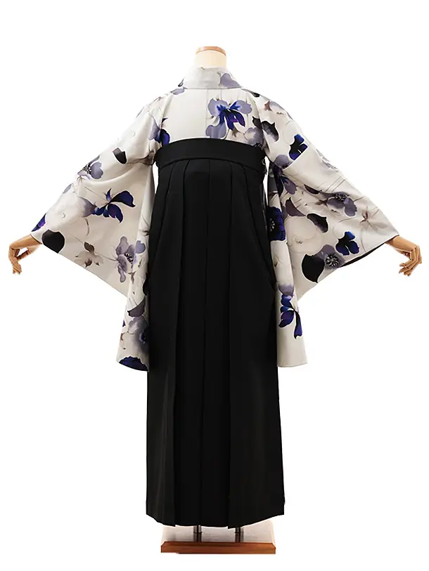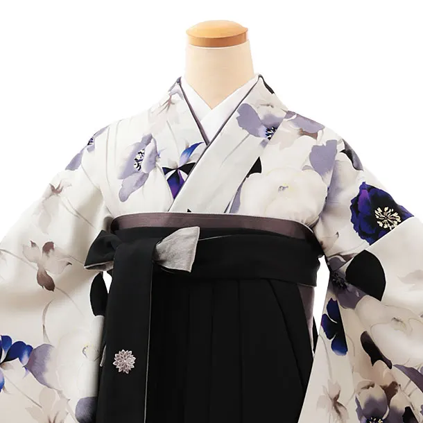 卒業式袴レンタルV512 JAPANSTYLE 薄ベージュ 椿ポピー×黒