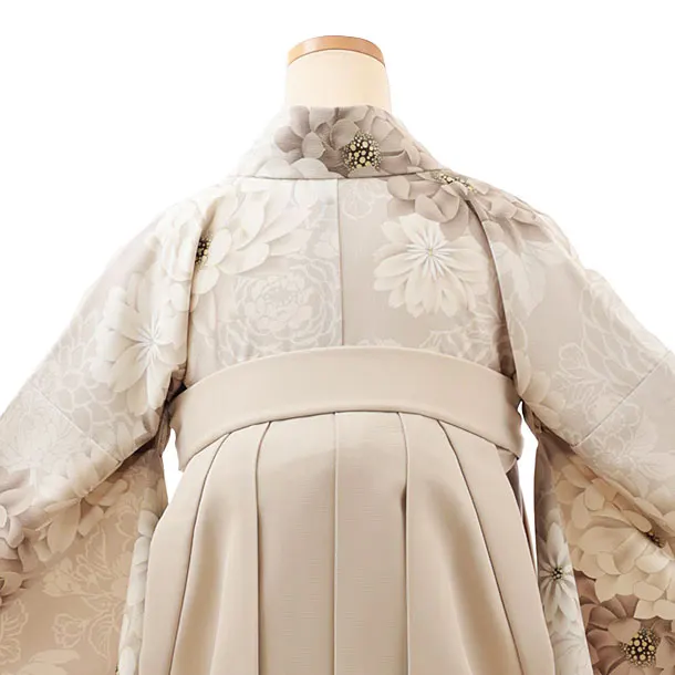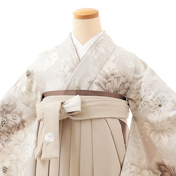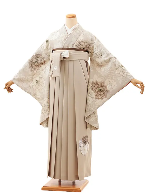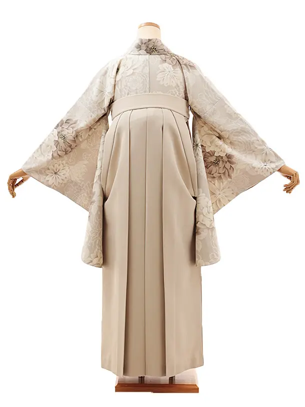 卒業式袴レンタルV514 紅一点 グレージュ菊×ベージュ