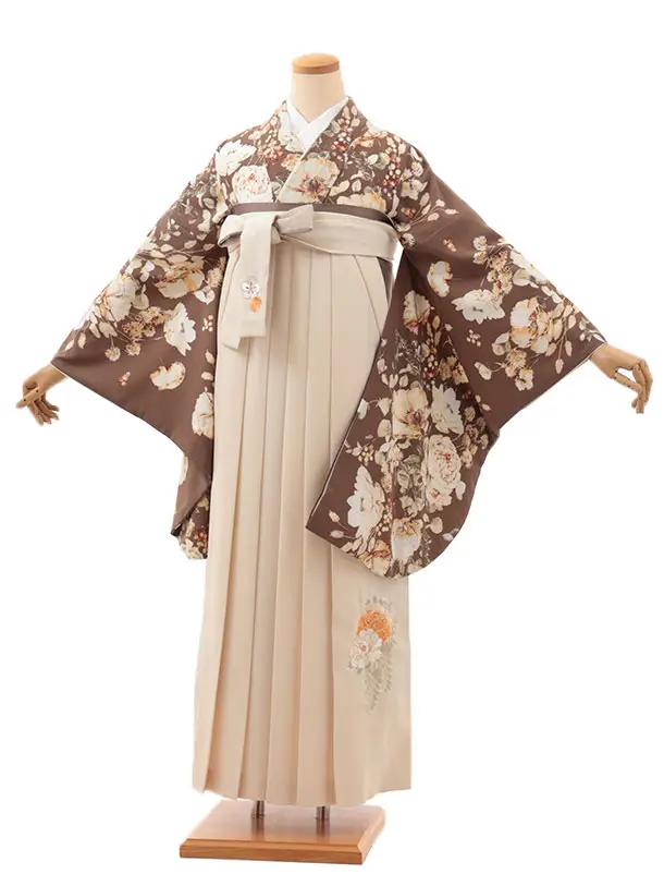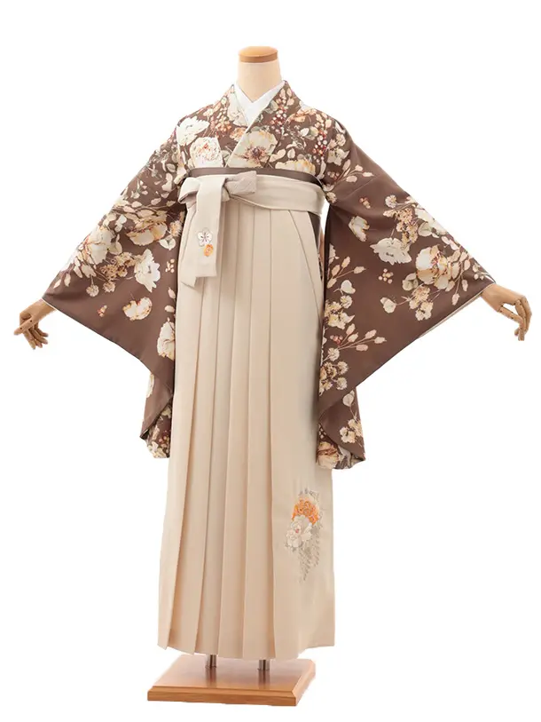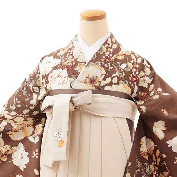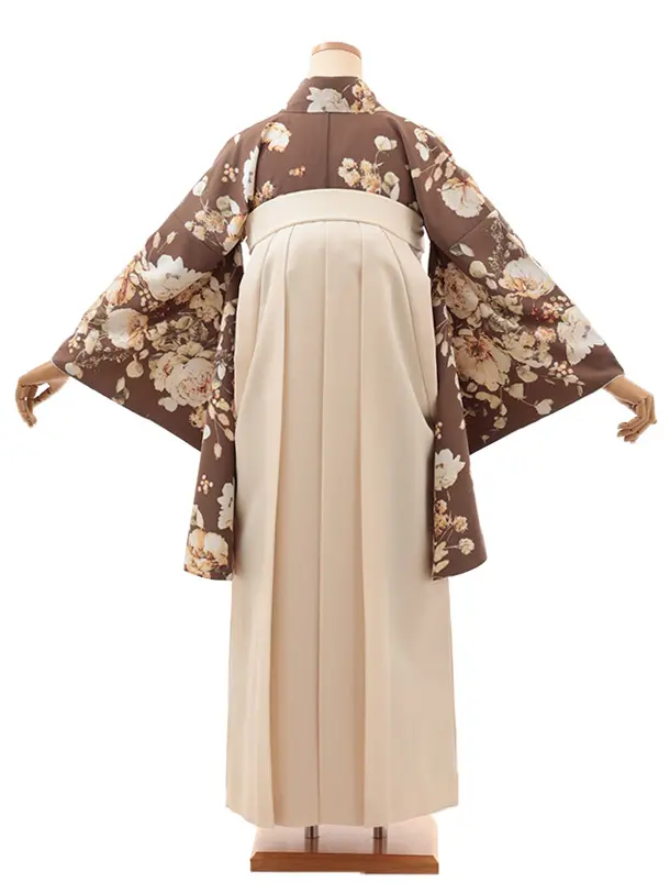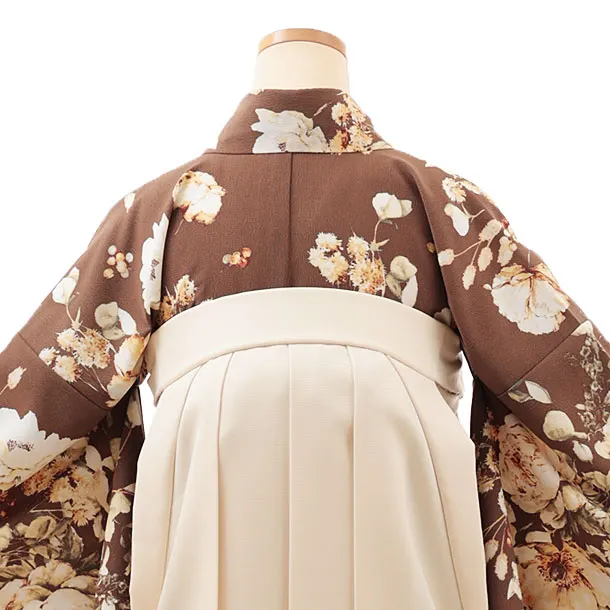 卒業式袴レンタルV519 ブラウン 水彩花×クリーム