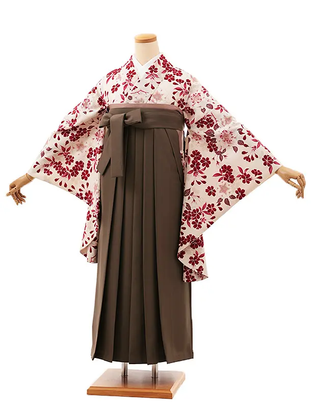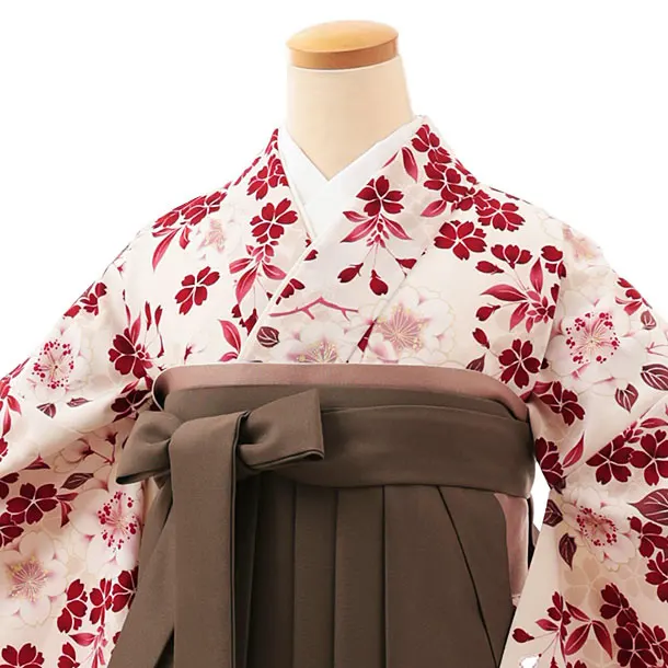 卒業式袴レンタルV529 淡ピンク赤桜×ブラウン