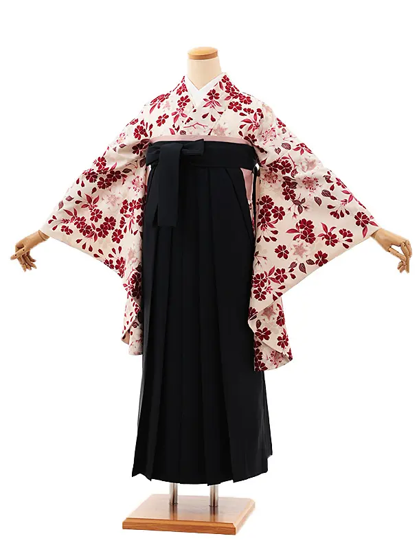 卒業式袴レンタルV531 淡ピンク赤桜×紺