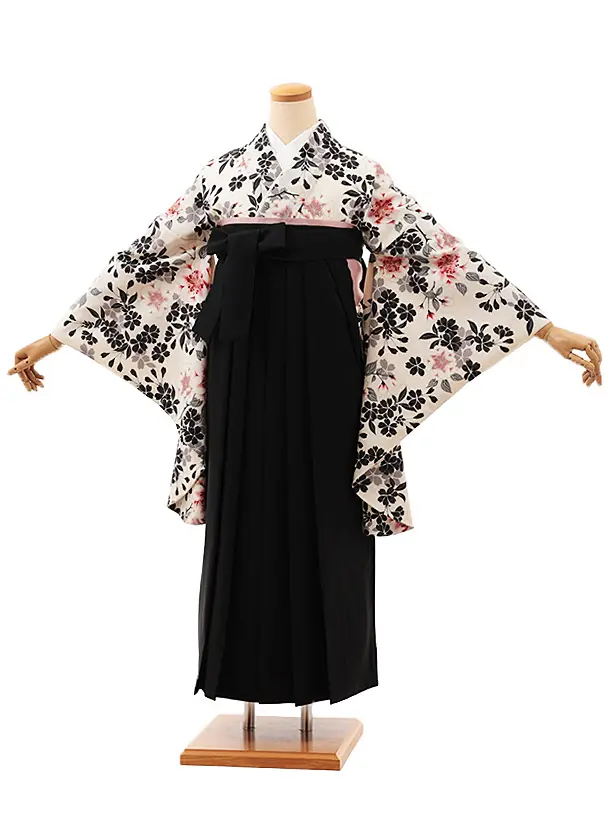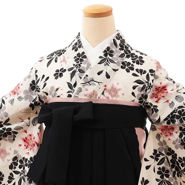 卒業式袴レンタルV534 淡ピンク黒桜×黒