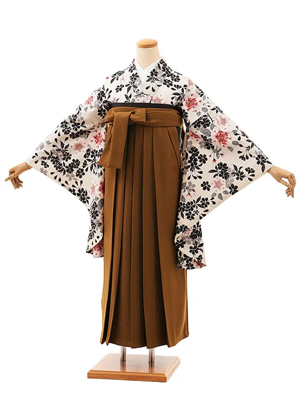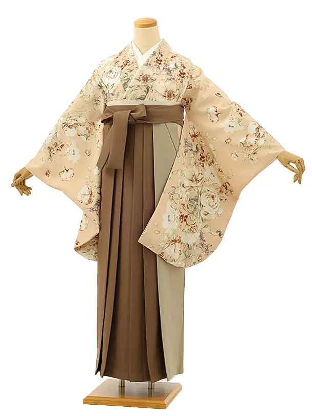 卒業式袴レンタルV535 淡ピンク黒桜×キャメルブラウンコーデュロイ