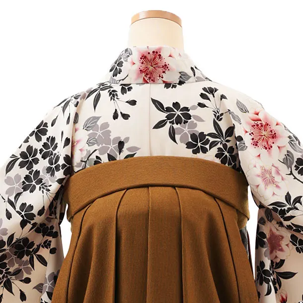 卒業式袴レンタルV536 淡ピンク黒桜×キャメルブラウンコーデュロイ