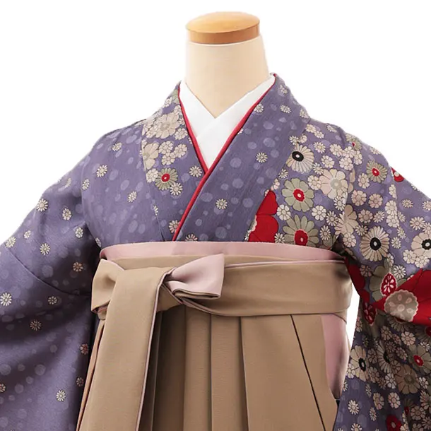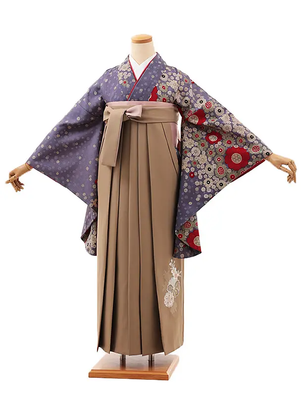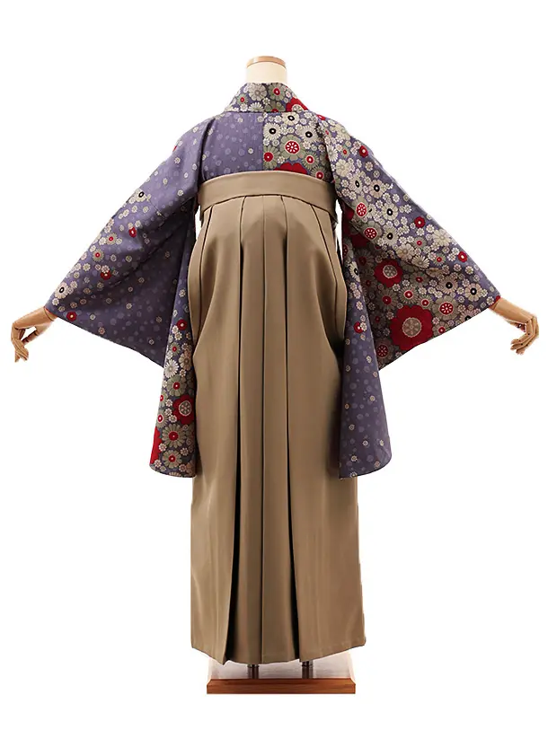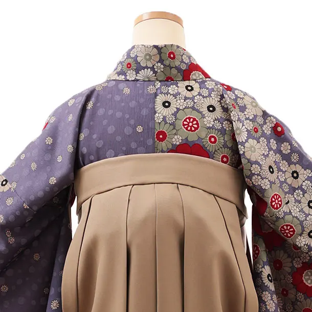 卒業式袴レンタルV540 パープル小花×モカベージュ