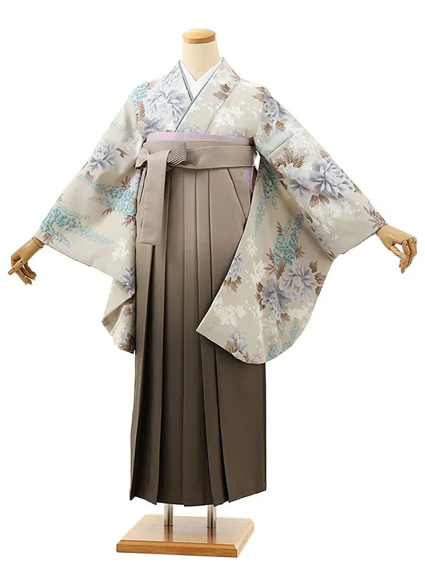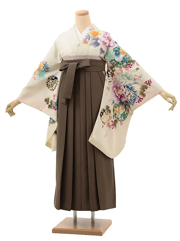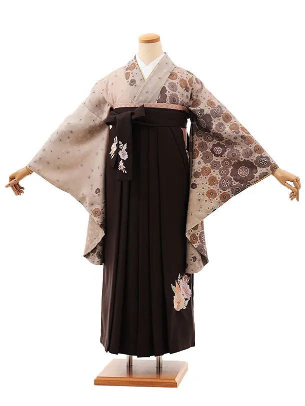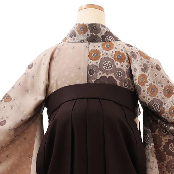 卒業式袴レンタルV541 ベージュ小花×こげ茶