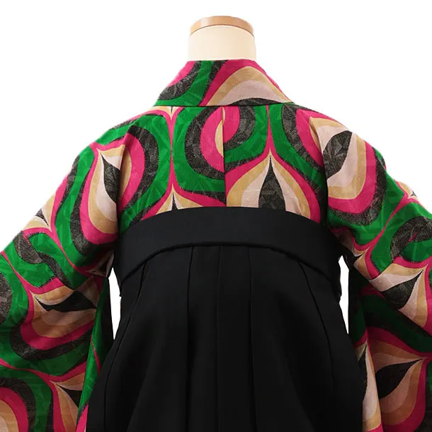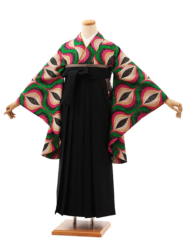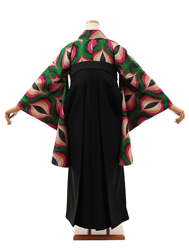卒業式袴レンタルV554 グリーン変わり柄×黒