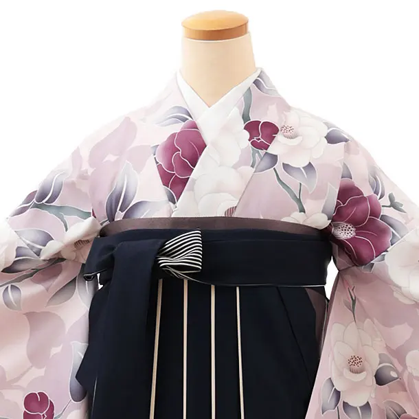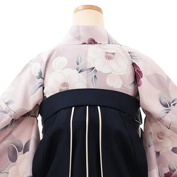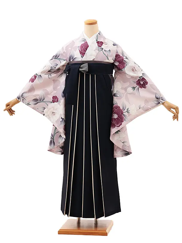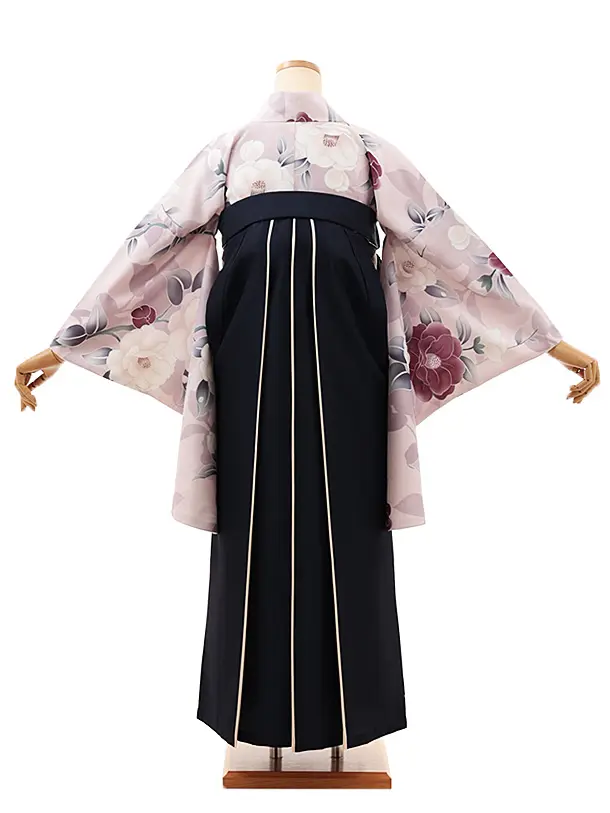 卒業式袴レンタルV559 うすパープル八重椿×紺アイボリー