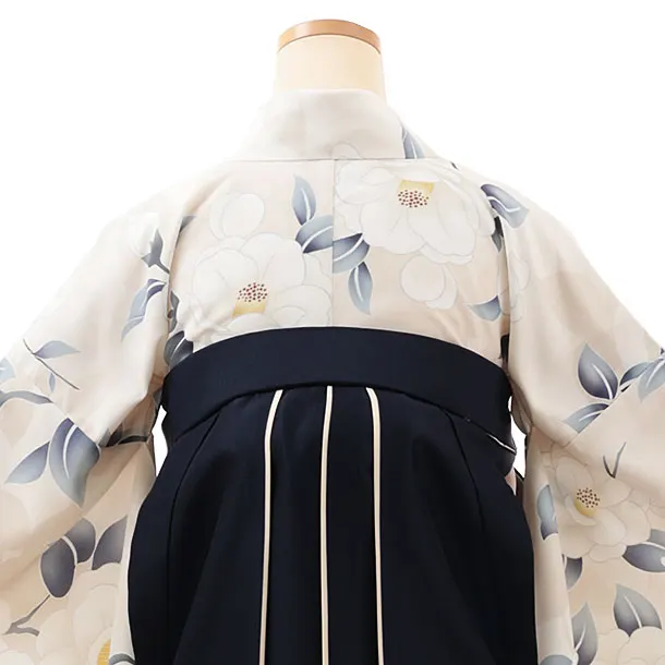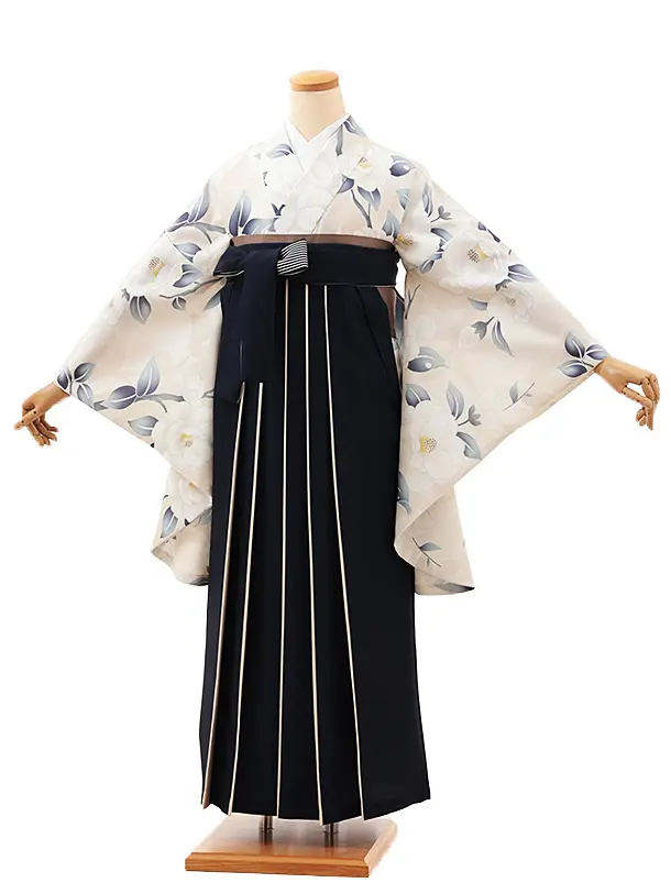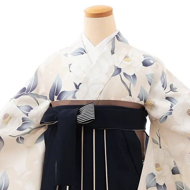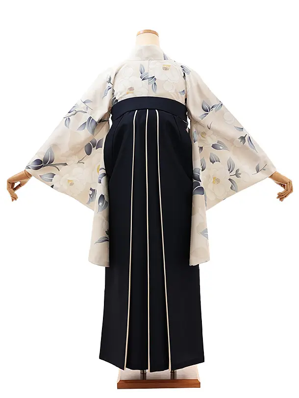 卒業式袴レンタルV560 アイボリー八重椿×紺アイボリー