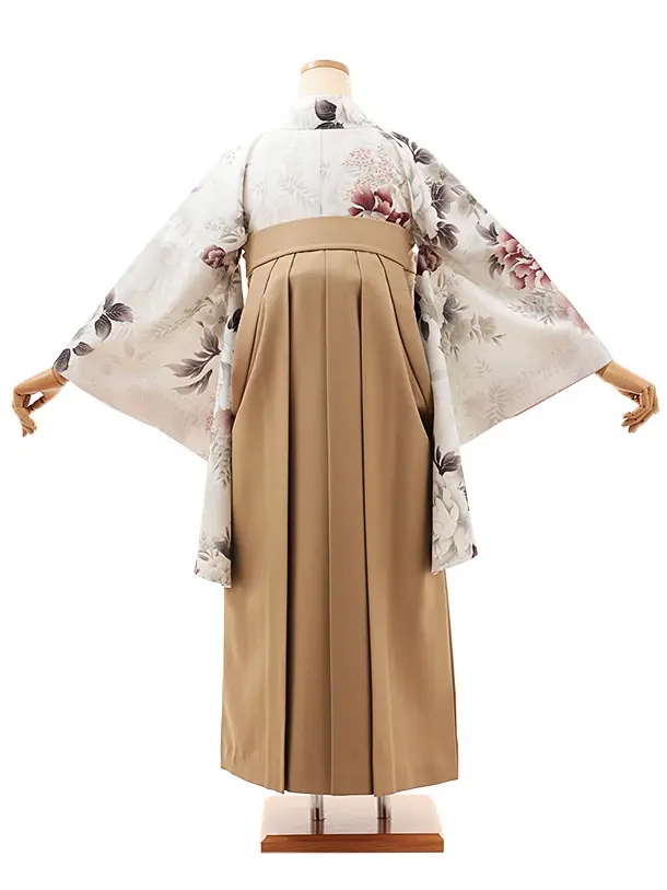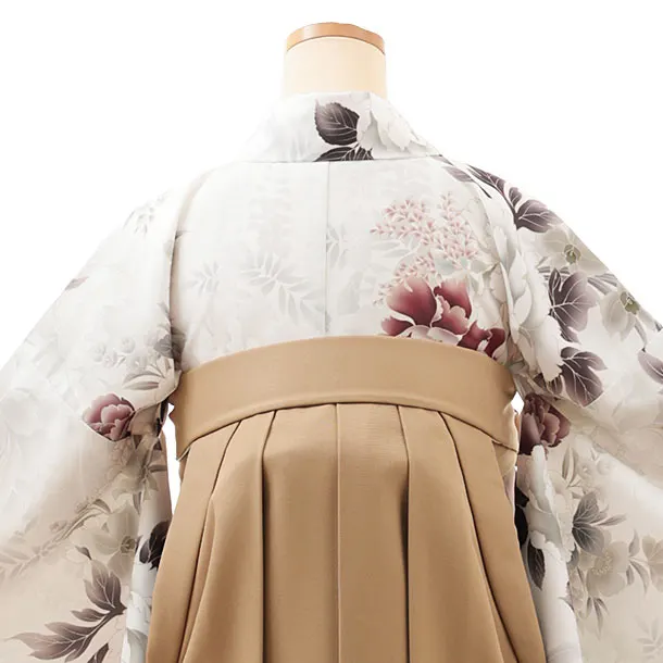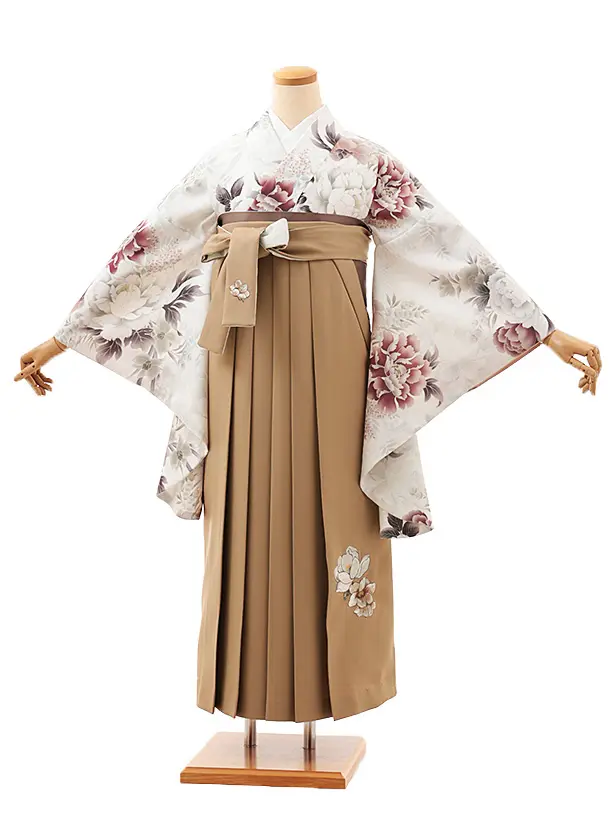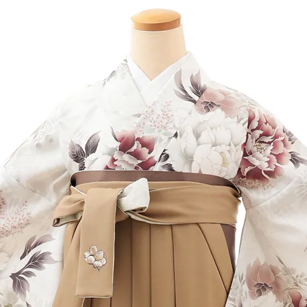 卒業式袴レンタルV561 オフホワイト牡丹×モカブラウン
