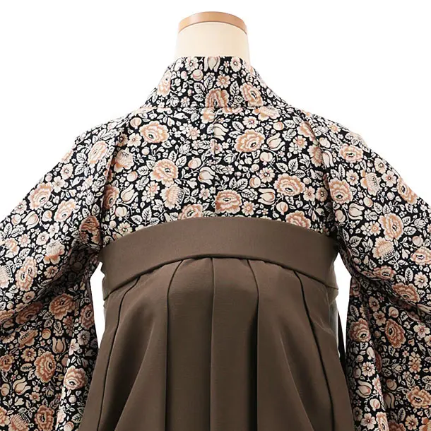 卒業式袴レンタルV579 黒地小花×ブラウン
