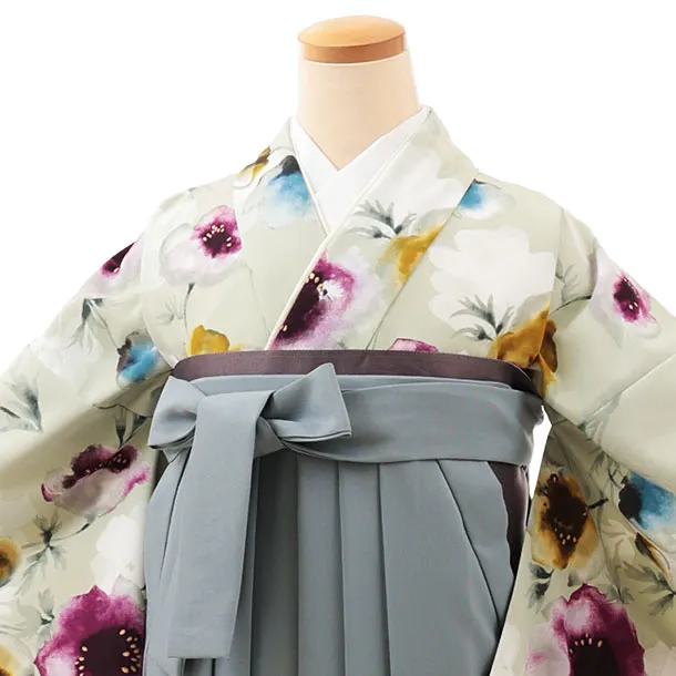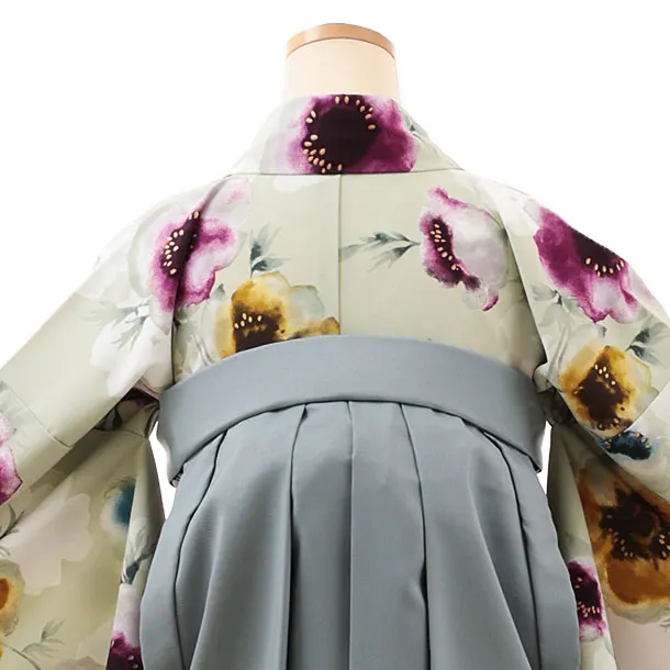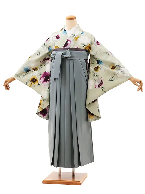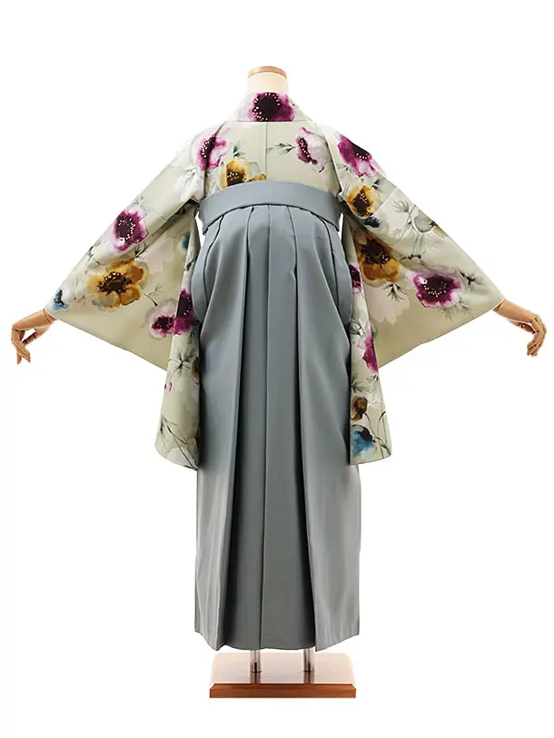 卒業式袴レンタルV584 パステルグリーン花×グレー