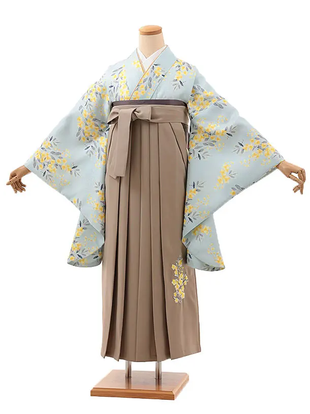 卒業式袴レンタルV599 水色地ミモザ×グレージュ