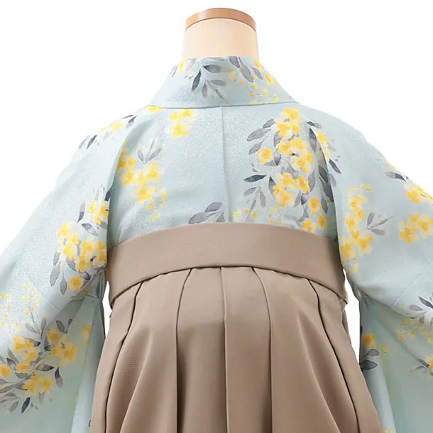 卒業式袴レンタルV600 水色地ミモザ×グレージュ