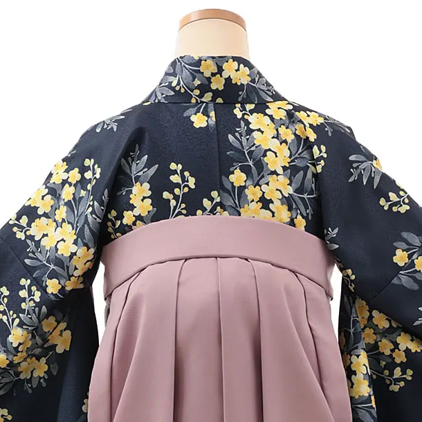 卒業式袴レンタルV612 紺地ミモザ×ピンクパープル