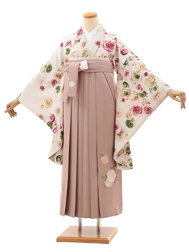 卒業式袴レンタルV618 紅一点 淡ピンク薔薇×モーヴピンク